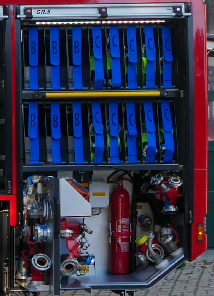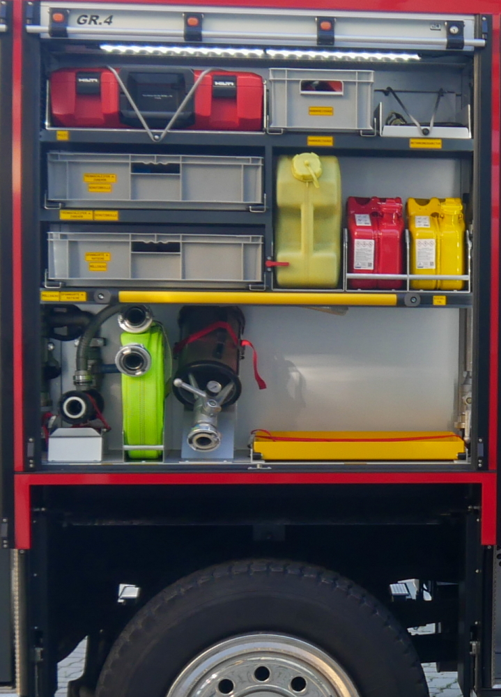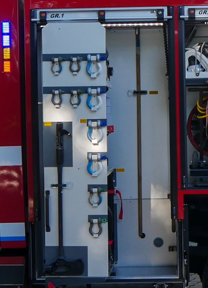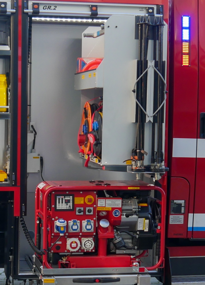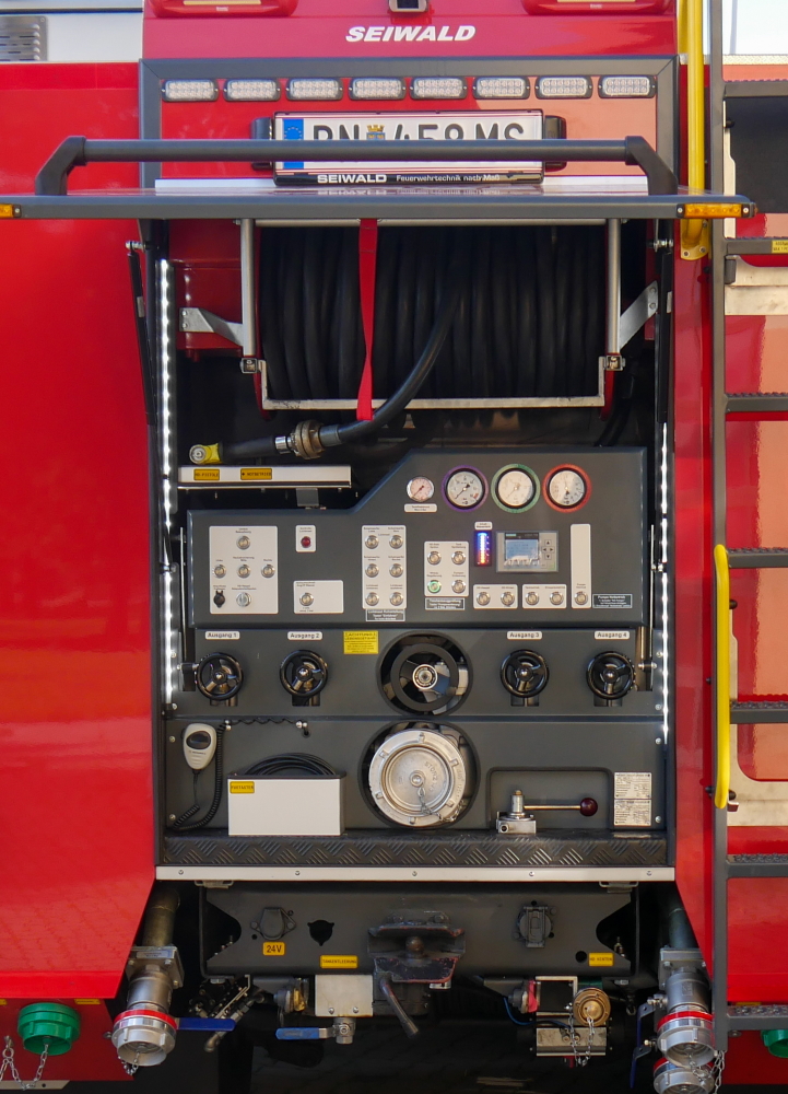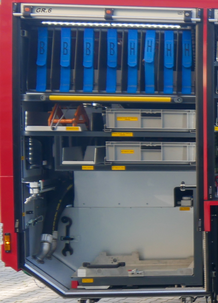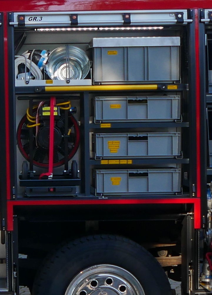 4000-Liter-Wassertank, Hochdruck-Schnellangriffseinrichtung, Atemschutz, Hebekissen, Seilwinde, Stromerzeuger, Unterwasserpumpe