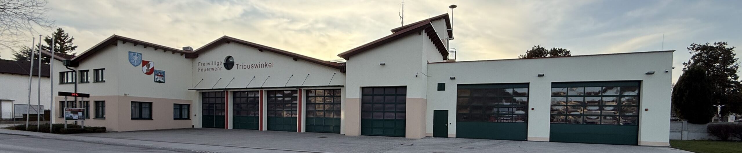 Sie bietet allen Fahrzeugen der Freiwilligen Feuerwehr Tribuswinkel ausreichend Platz, sodass auch anfallende Wartungsarbeit problemlos in der Halle durchgeführt werden können. Direkt an die Fahrzeughalle angeschlossen ist die Werkstätte des Fahrmeisters. Außerdem befindet sich daneben auch die Waschhalle, wo sowohl die Fahrzeuge als auch die Schläuche gereinigt werden können.