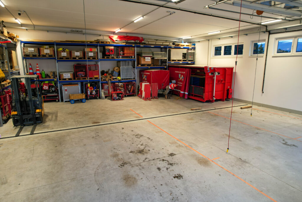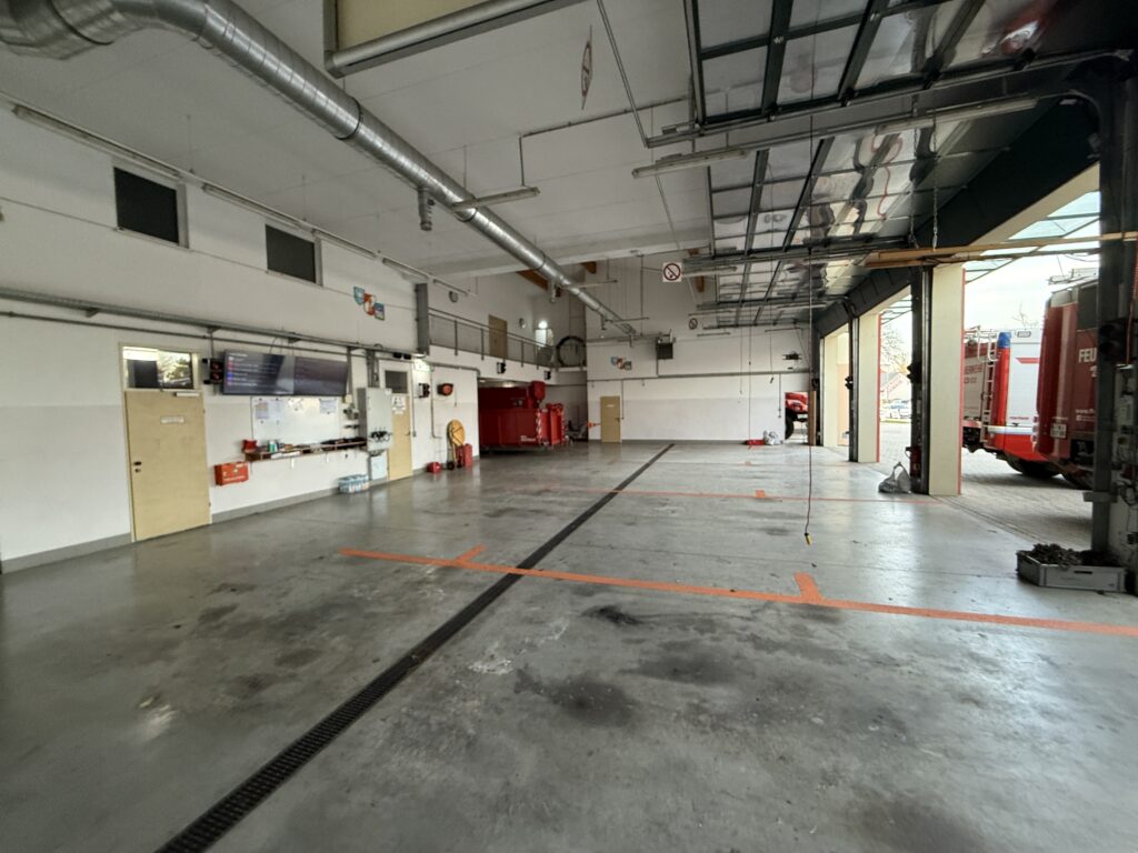 Das „Herzstück“ des Feuerwehrhauses wird durch die Fahrzeughalle verkörpert.