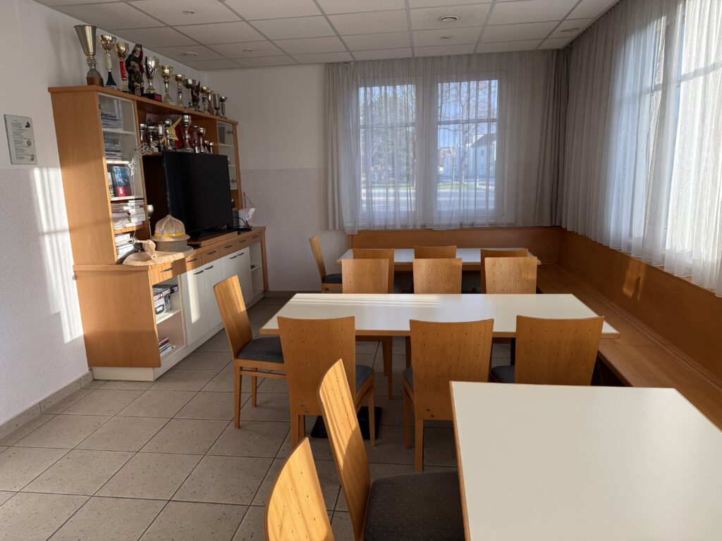Im 1. Stock befindet sich der Lehr- bzw. Sitzungssaal. Hier können diverse Schulungen sowie die Besprechungen und die Mitgliederversammlungen abgehalten werden.