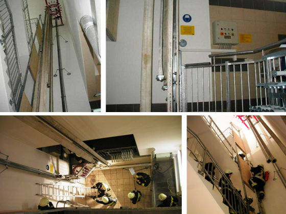 Das neue Feuerwehrhaus verfügt über einen Schlauchturm, in dem die Schläuche gewaschen und mit Hilfe eines speziellen Aufzuges im Turm aufgehängt werden.