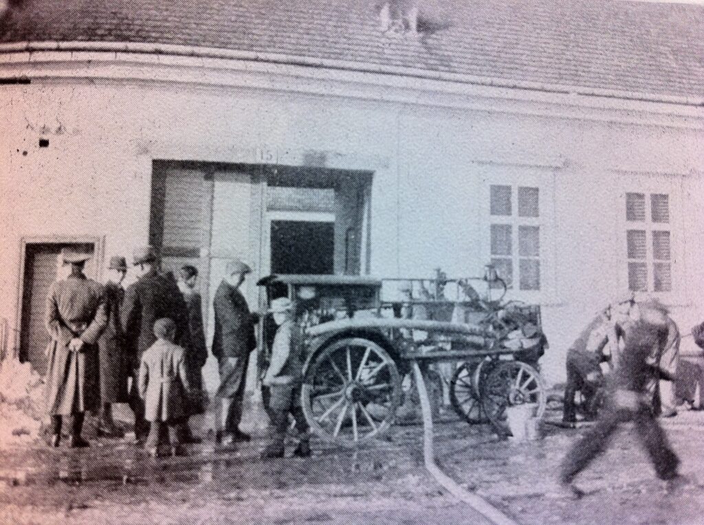 Das erste notdürftig eingerichtete Requisitenhaus stand auf dem Kirchenplatz, neben dem Mühlbach. Der Gerätebestand war äußerst bescheiden. Mit einer Handdruckspritze, Schläuchen und einigen Kleingeräten wurde das Auslangen gedeckt. Erst 17 Jahre später konnte ein Mannschafts- und Gerätewagen angekauft werden.