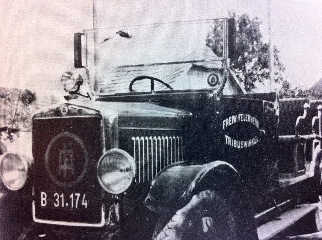 Um der technischen Entwicklung auch auf dem Gebiete der Brandbekämpfung Rechnung zu tragen, erstand man 1936 das erste motorisierte Löschfahrzeug, welches mit einer Tragkraftspritze ausgestattet war.